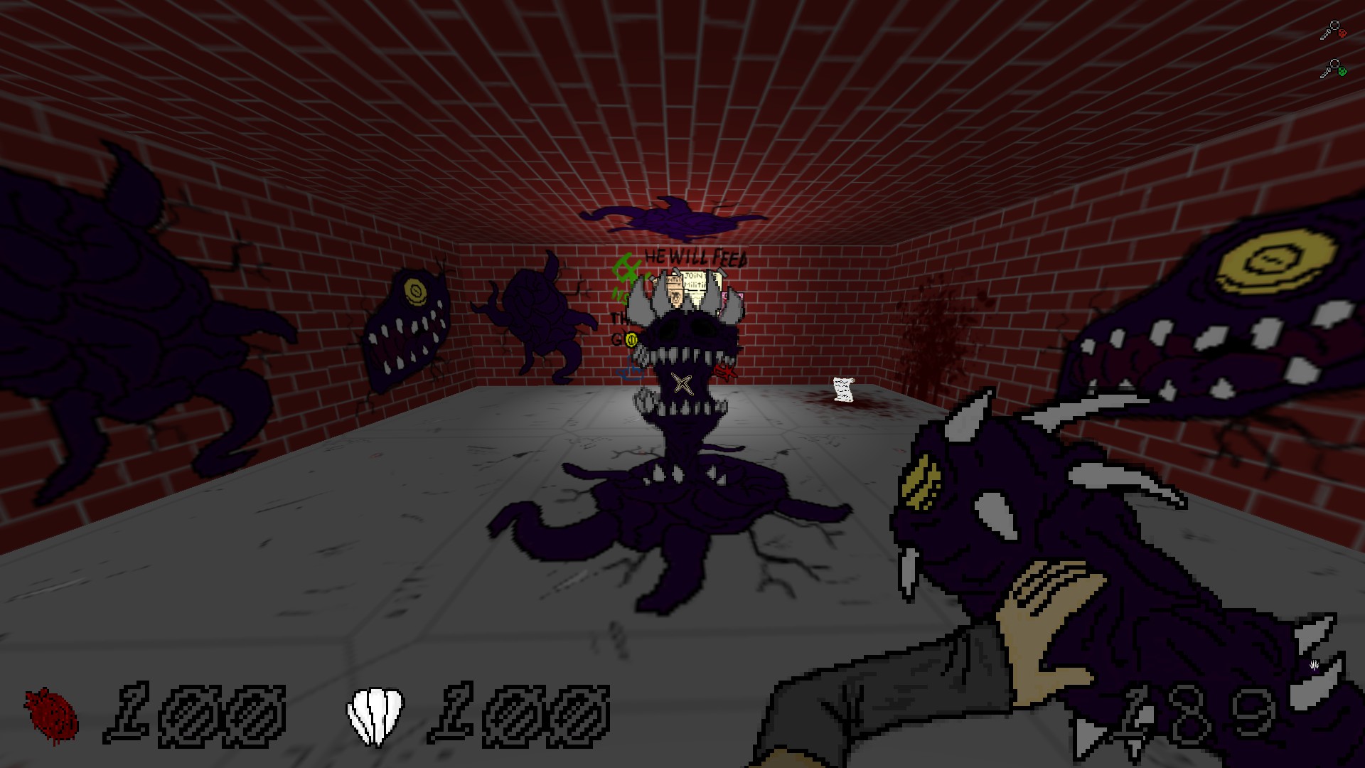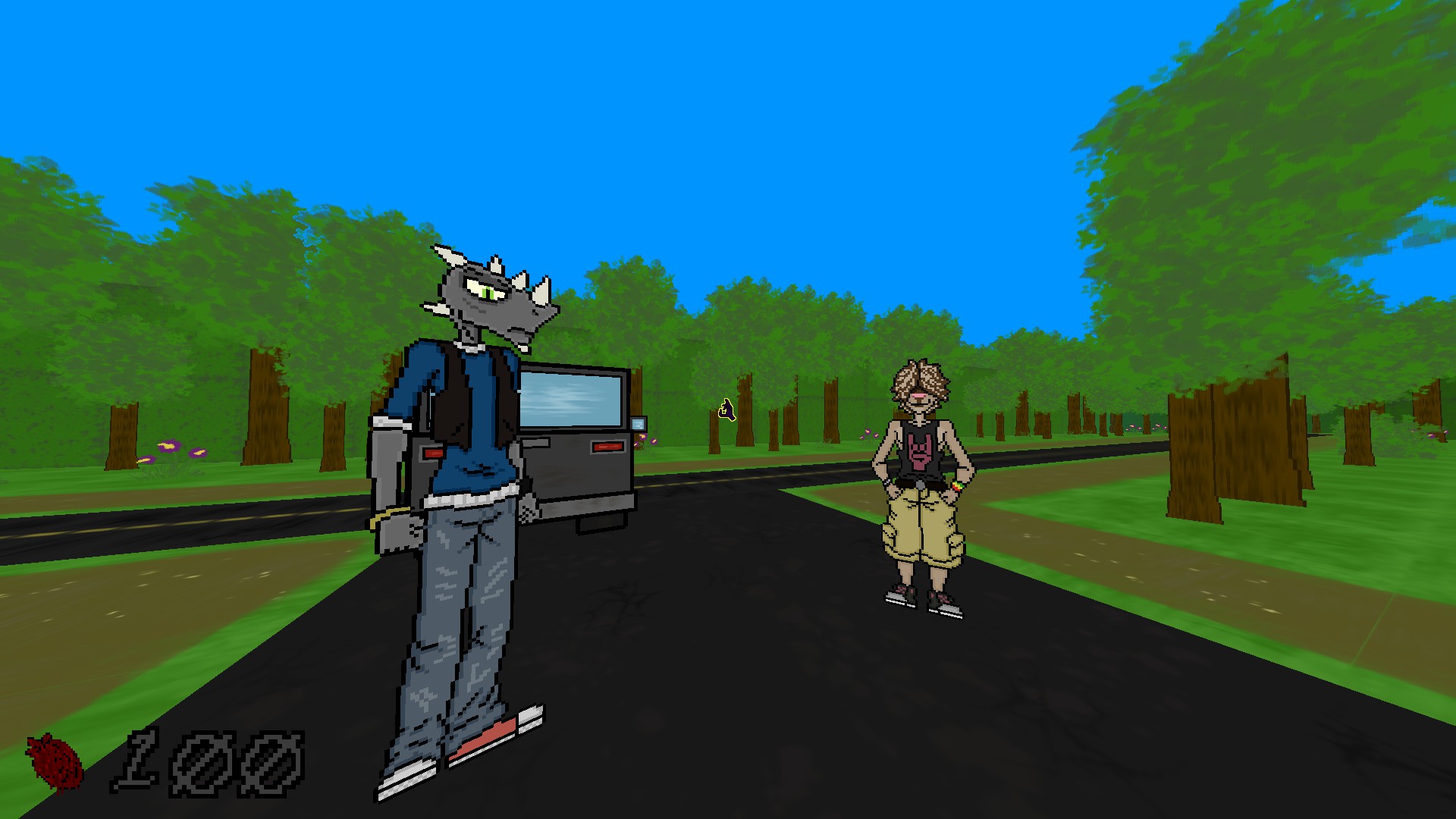 played this out of curiosity after the jam lol happy holidays :v while I'm not a fan of furrys, the sprite art in this is very good! Textures need some work to make the sprites feel like they belong there! The artist clearly knows how to draw weapons, enemies and characters but the world is not so nice to look at! I know it is a challenge to achieve good looking textures but I believe it is doable! Maybe going full comic style with the textures? Hope it keeps getting updated, all the monsters and weapons are excellent!